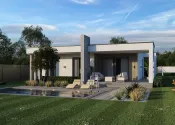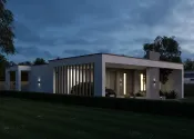Zabezpečenie bezpečnostnými dverami. Plochá strecha. Rovinatý pozemok.